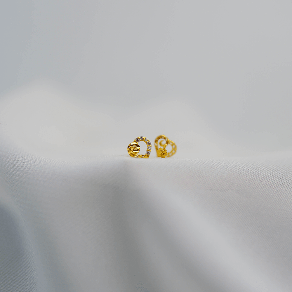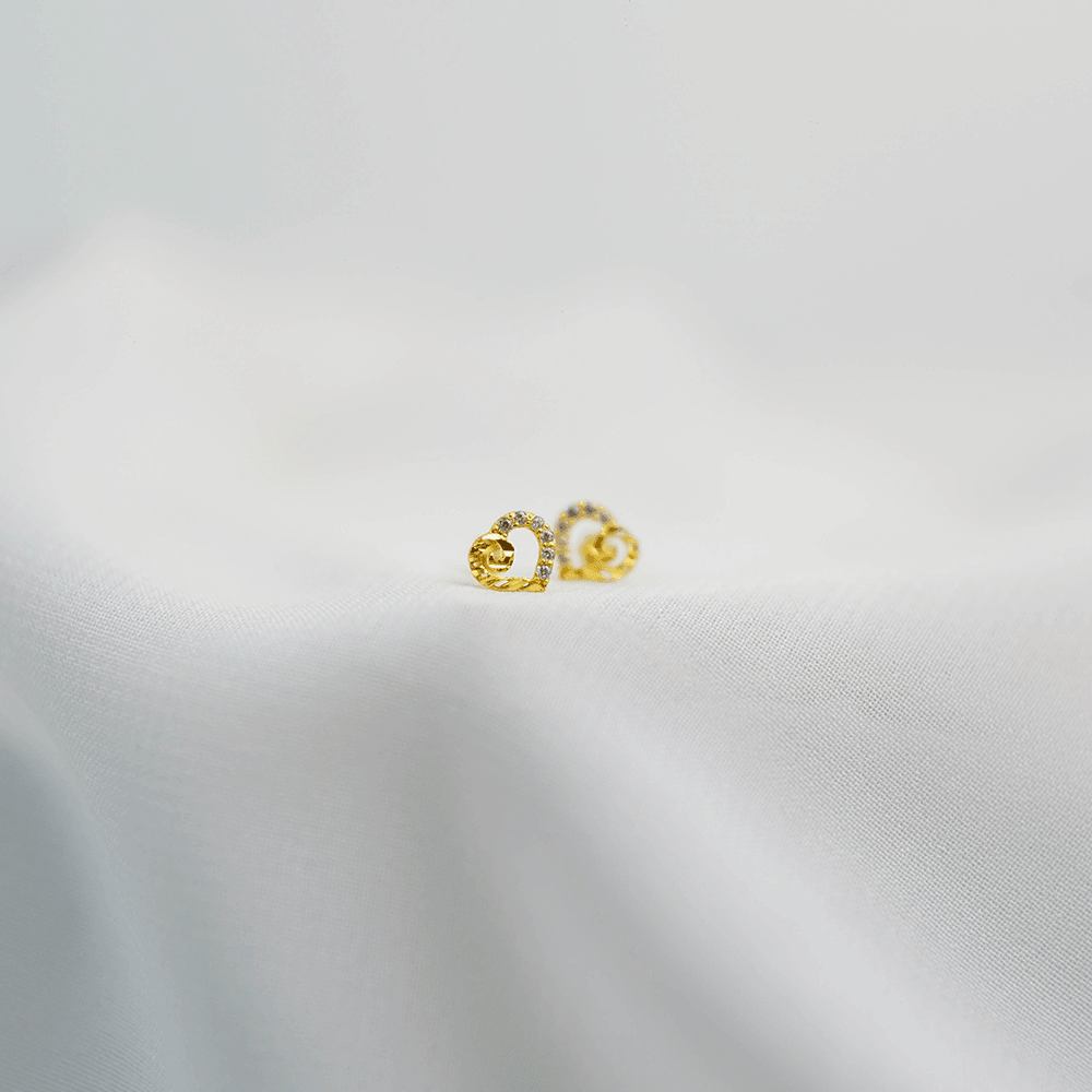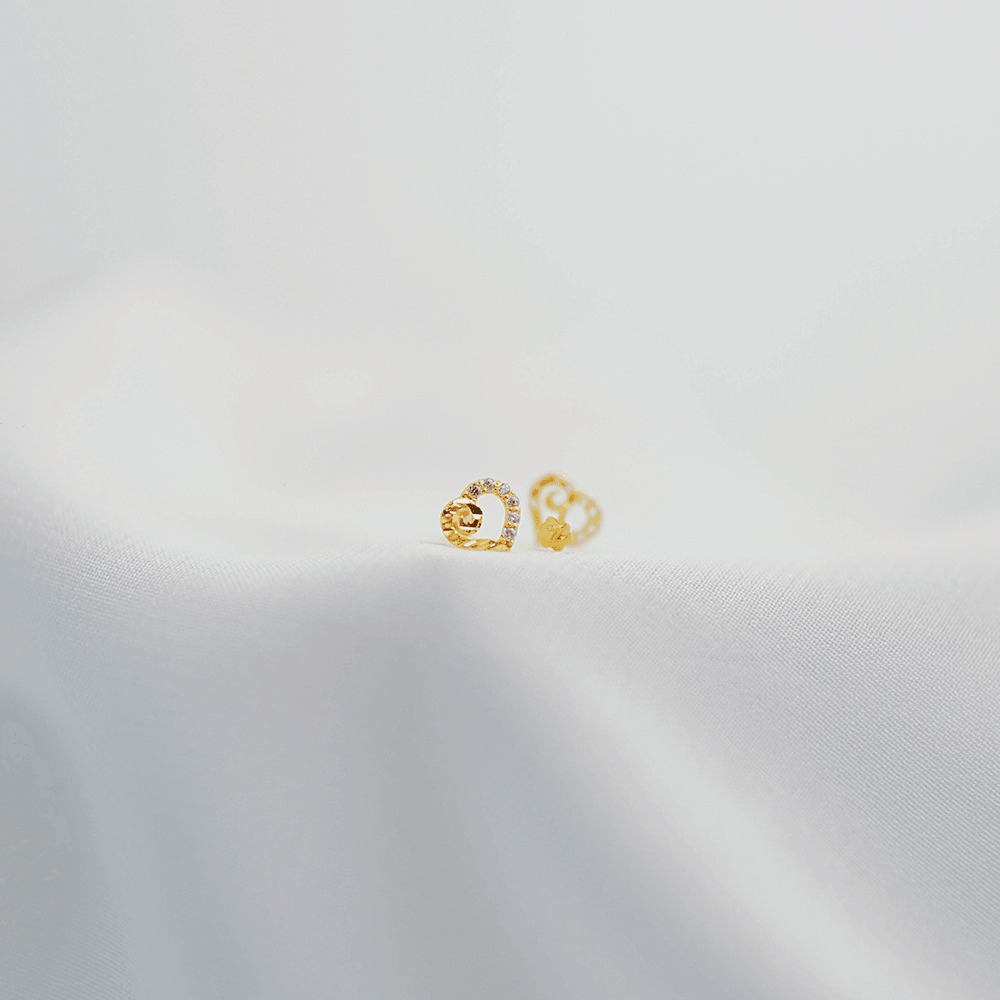 Our Pavé Heart Gold studs are a testament to the artistry and beauty of fine jewelry. Crafted from premium quality, 100% real 12 carat Gold and lustrous zircon stones, these earrings are a true work of art. The heart-shaped design is a symbol of love and affection, making these studs the perfect gift for someone special. Their exquisite detailing and superior quality make them an enduring piece that can be cherished for years to come. Elevate your style and showcase your individuality with these stunning Pavé Heart Gold studs