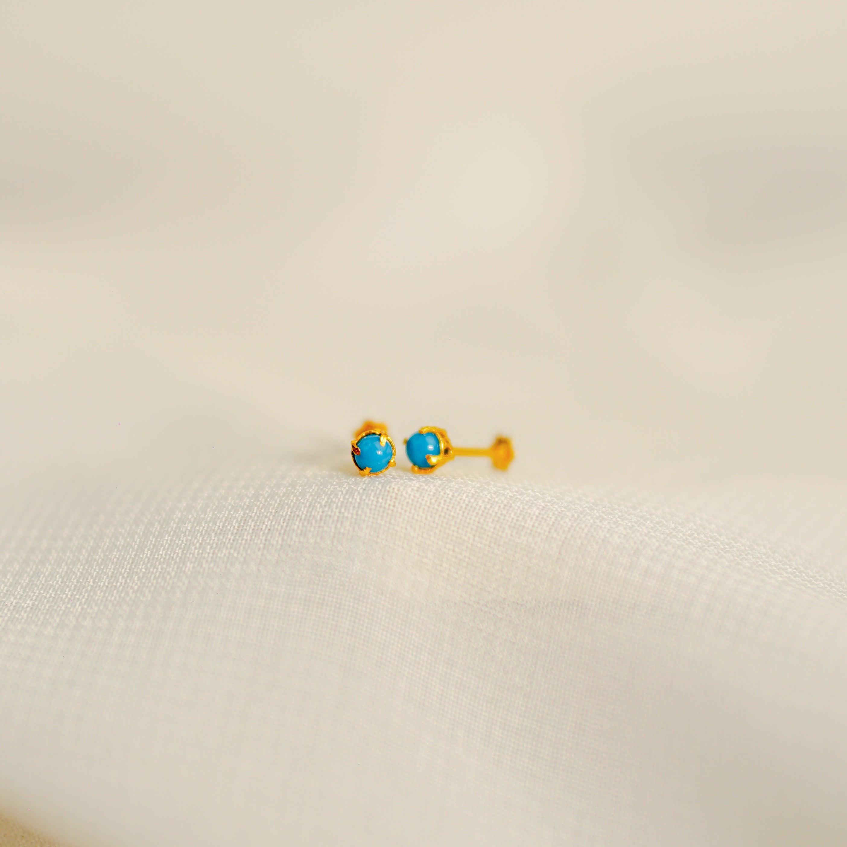 Adorn your ears with a pair of exquisite Feroza Gold Studs that exude luxury and exclusivity. Handcrafted with utmost precision, these ear studs are studded with premium quality Feroza stones that sparkle at every angle. The 12 carat Gold finish adds to the overall opulence of these earrings, making them a must-have in your jewelry collection. Experience the cool aura around you as you flaunt these magnificent studs at your next event or special occasion.